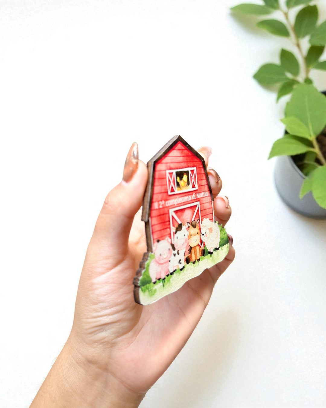Magnete personalizzato Fattoria in legno 7,5x8,5 cm — un dolce ricordo perfetto per feste di compleanno a tema animali o campagna!