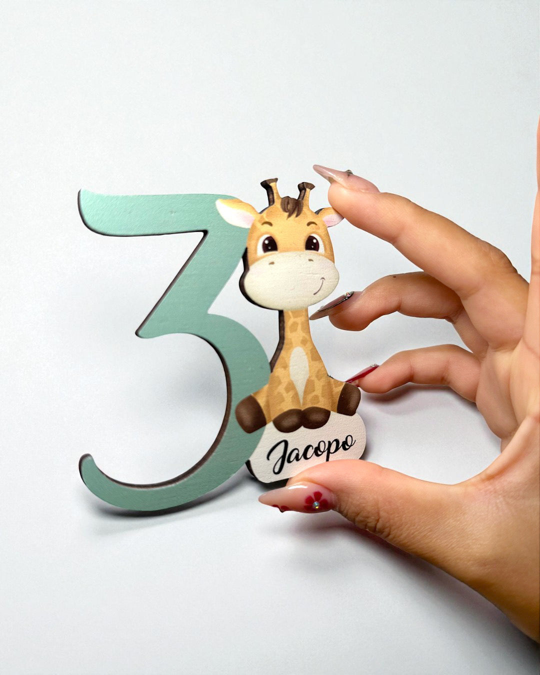 Sia il numero che l’animale possono essere personalizzati su richiesta (ad esempio leone, elefantino, coniglietto, panda e molti altri).